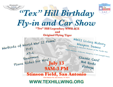 In a few days the Tex Hill Wing will be celebrating Tex’s birthday on July 13th with a fly-in at Stinson: