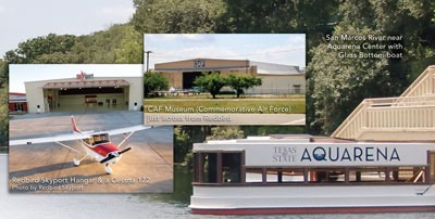 Aquarena Center, now owned and operated by the Texas State University offers glass-bottom boat tours on the beautiful San Marcos River. The focus is to preserve this environmentally sensitive resource, to educate the public, and to protect this highly valued area. Distance from KHYI is 5 miles. www.aquarena.txstate.edu